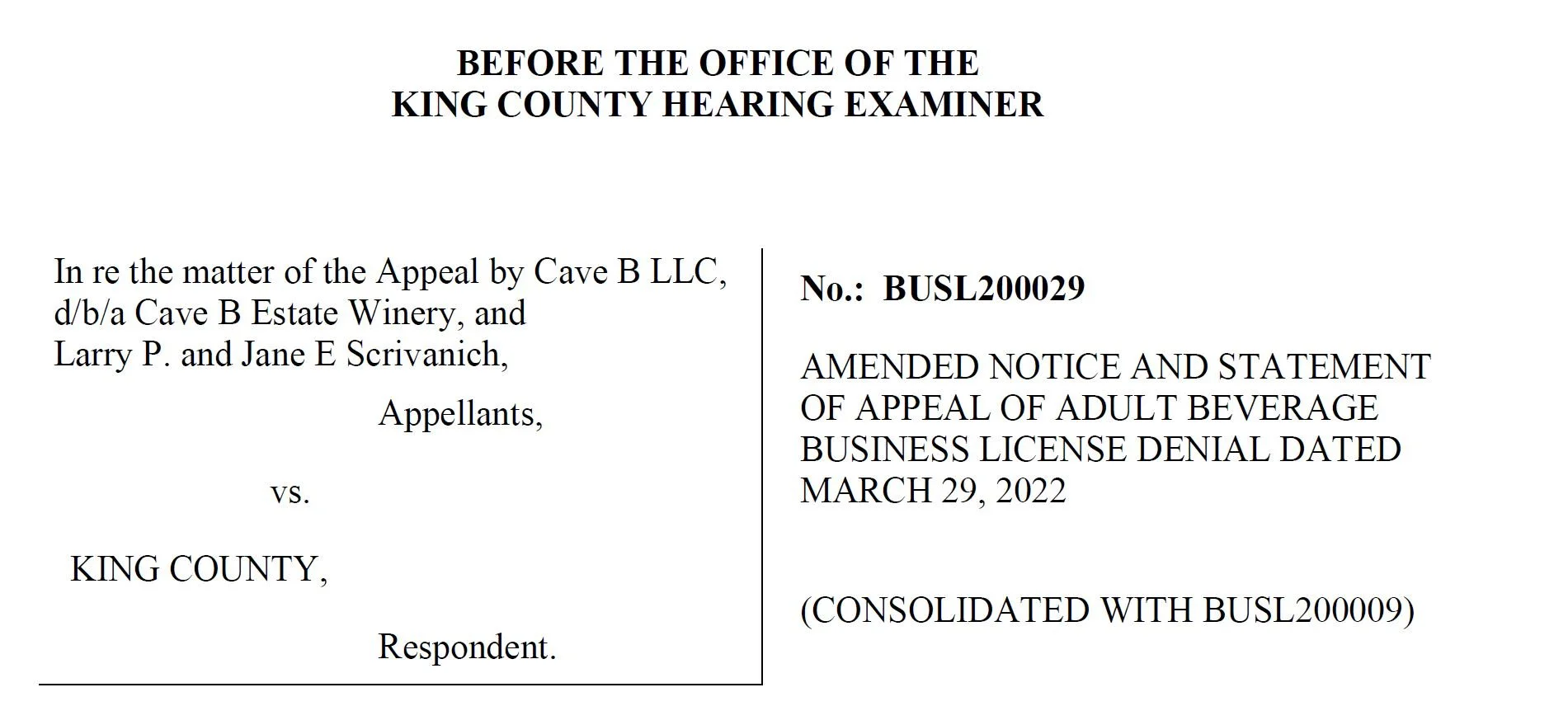 Cave B Amended Appeal to Hearing Examiner May 11, 2022