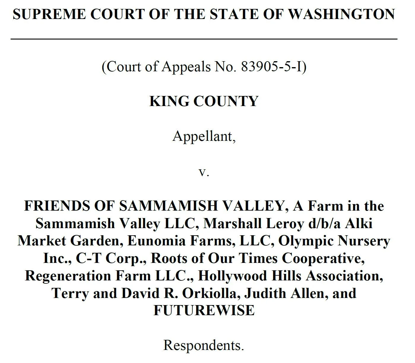 FoSV submits a Petition for Review to the Washington State Supreme Court for the Court of Appeals opinion No. 83905-5-I.