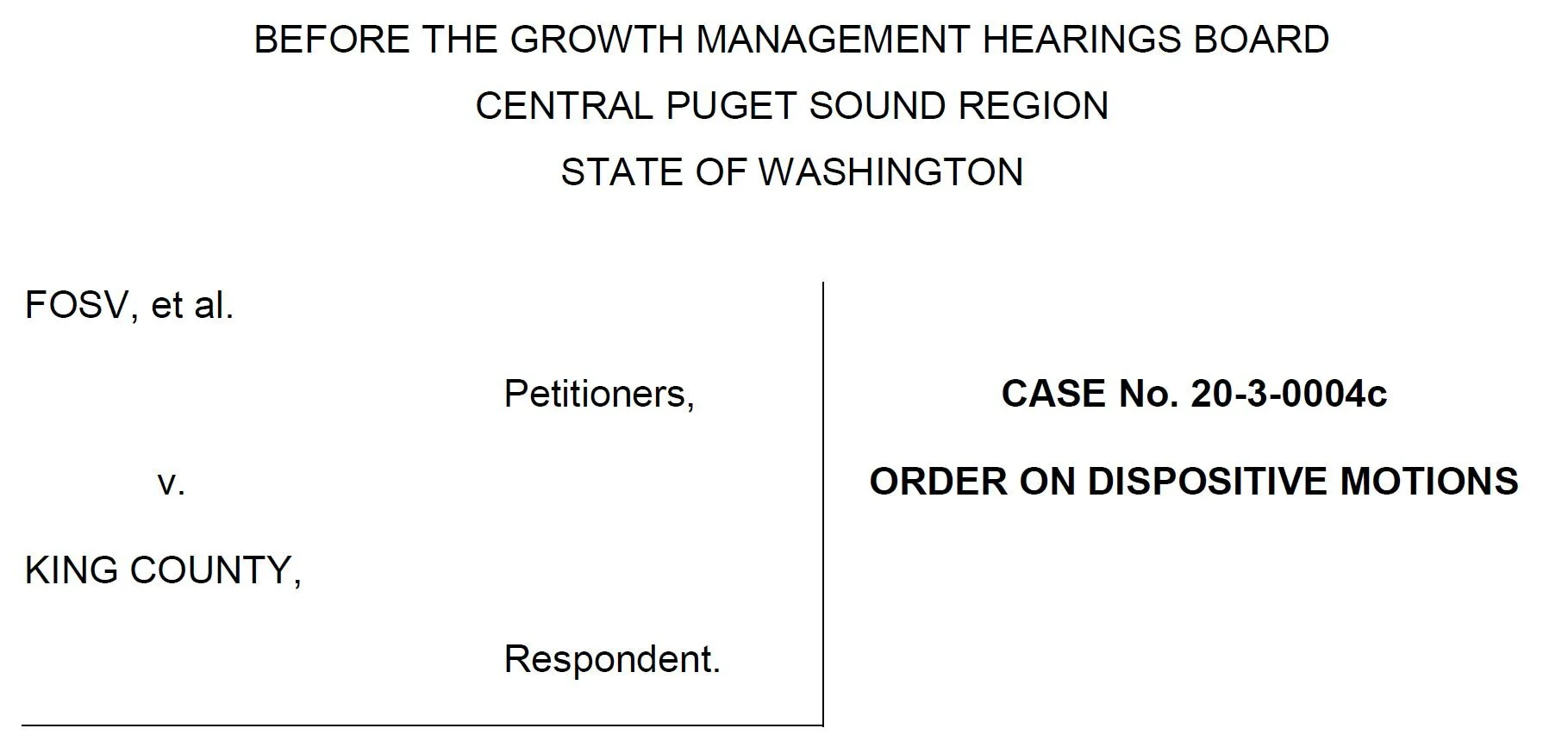 The Washington State Growth Management Hearings Board has invalidated King County’s controversial Adult Beverage zoning ordinance in a strongly worded, unanimous May 26th Order. The Board’s Order cites a dozen grounds for invalidation under the State Environmental Policy Act (SEPA) and the Growth Management Act (GMA) and faults the County repeatedly for ignoring the ordinance’s potential environmental harm and impacts on infrastructure.