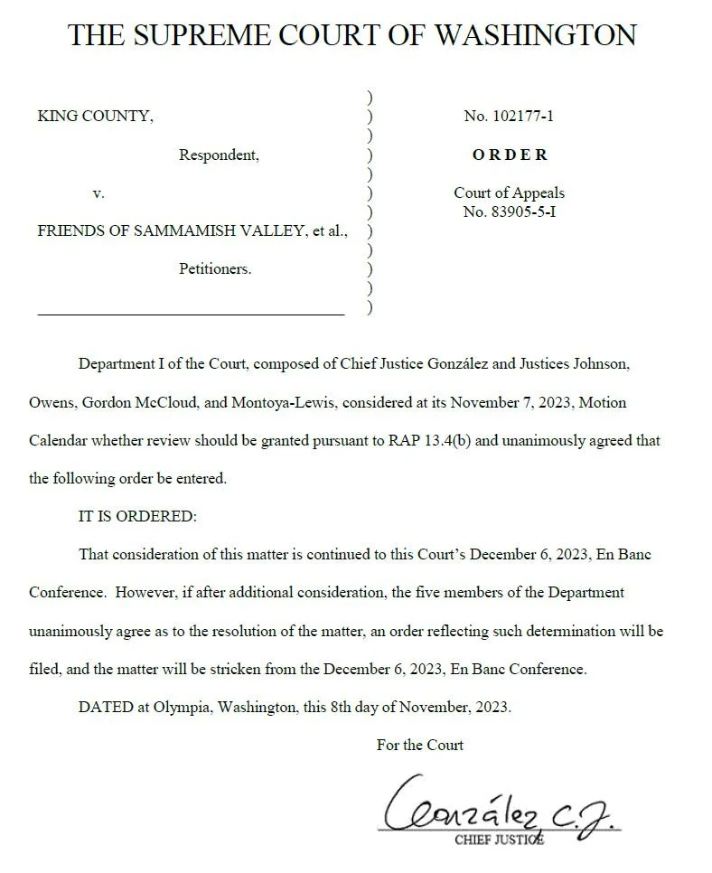 Order for Further Review at En Banc Meeting, November 8, 2023