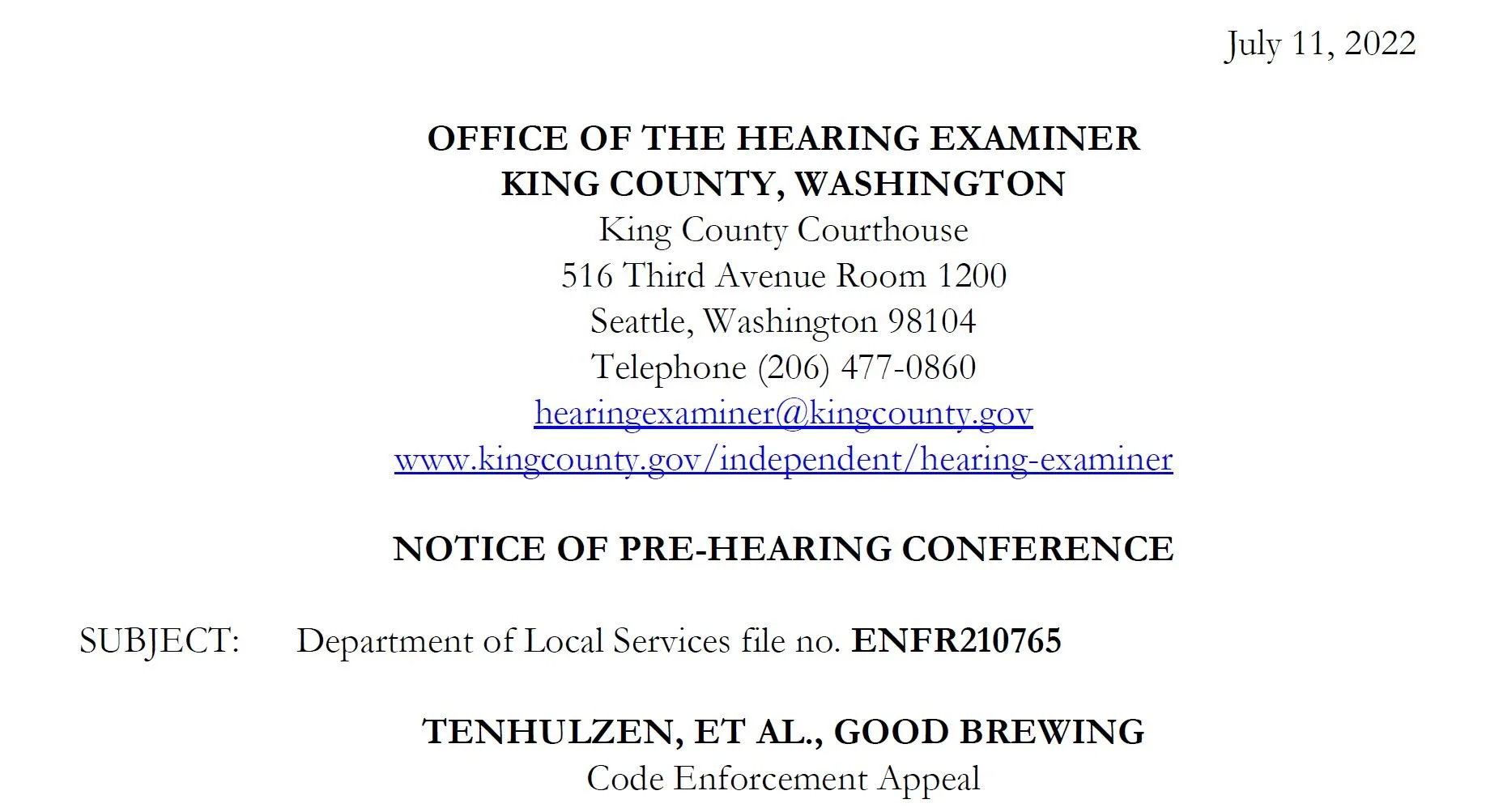 Tenhulzen / Good Brewing Conditional Order of Stay July 11, 2022